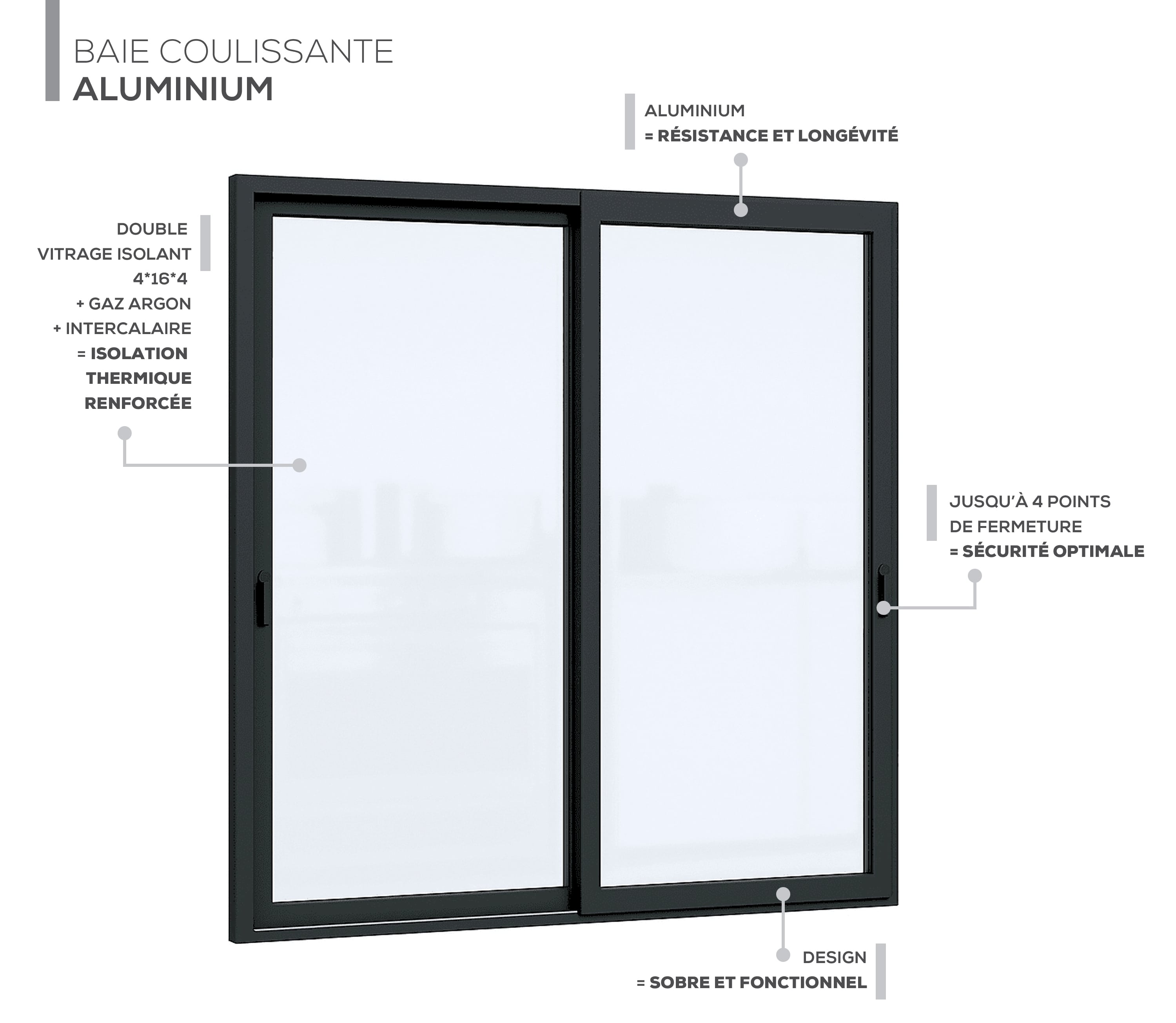 - Matériau : Menuiserie en aluminium thermolaqué.