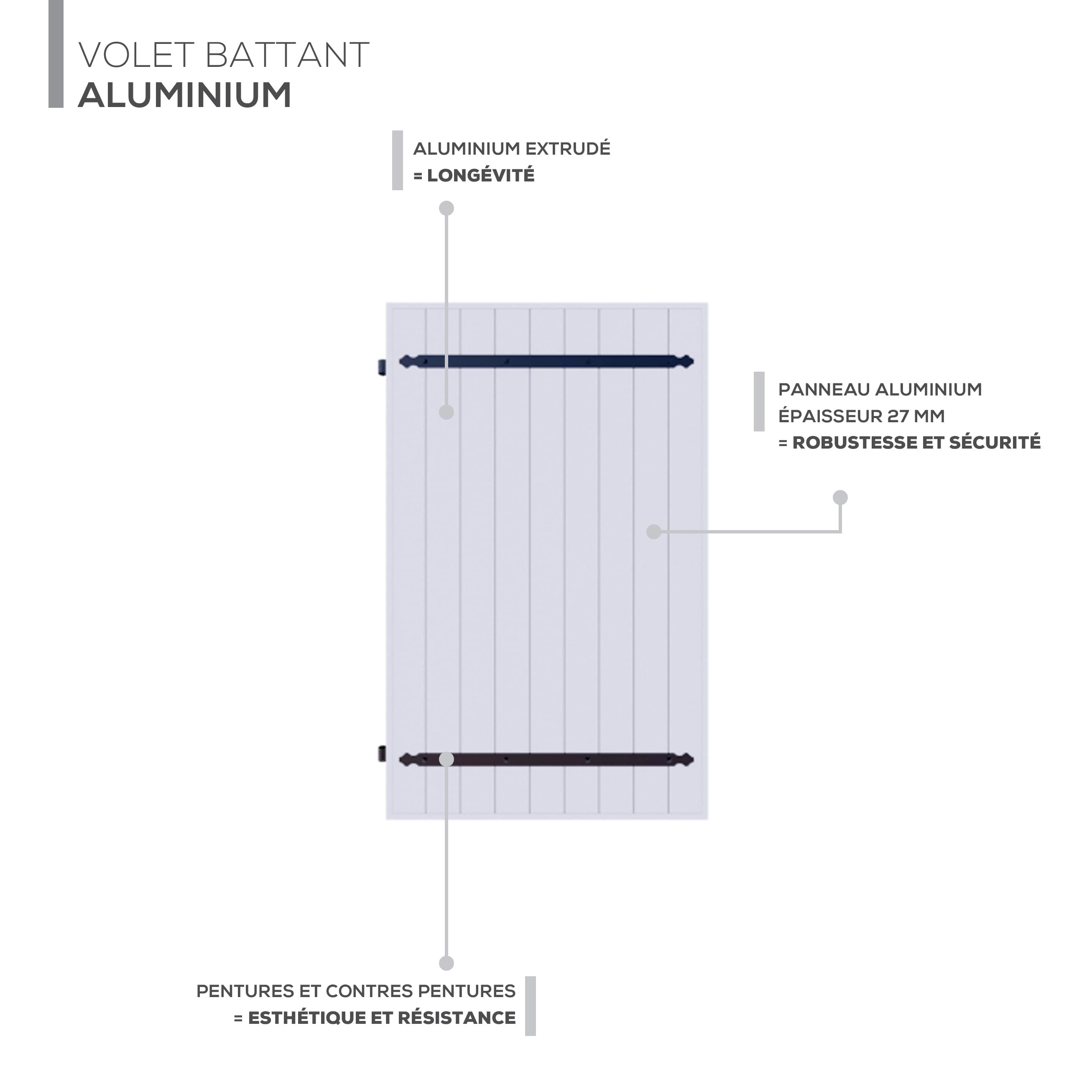 Volet Battant Aluminium Extrudé et Renforcé - Pentures & Contres-Pentures
