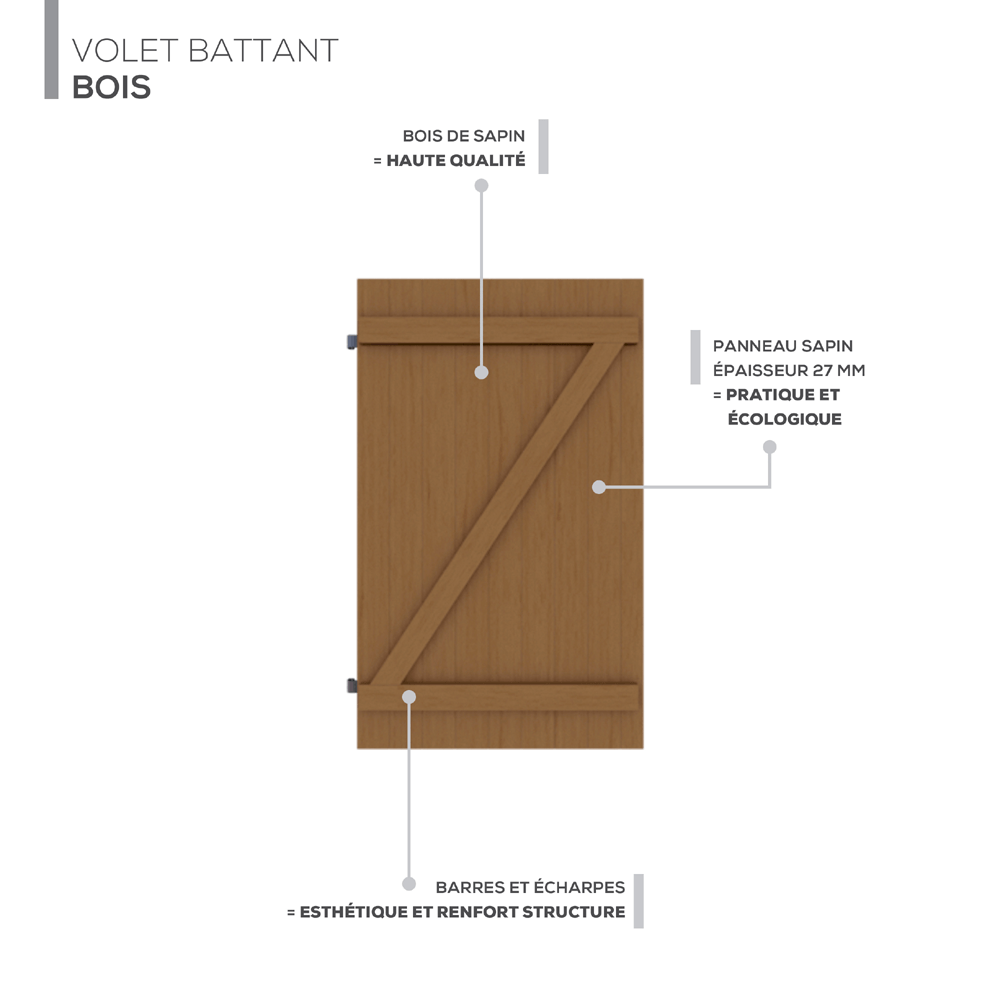 Volet Battant Bois Sapin - Barres et Écharpes