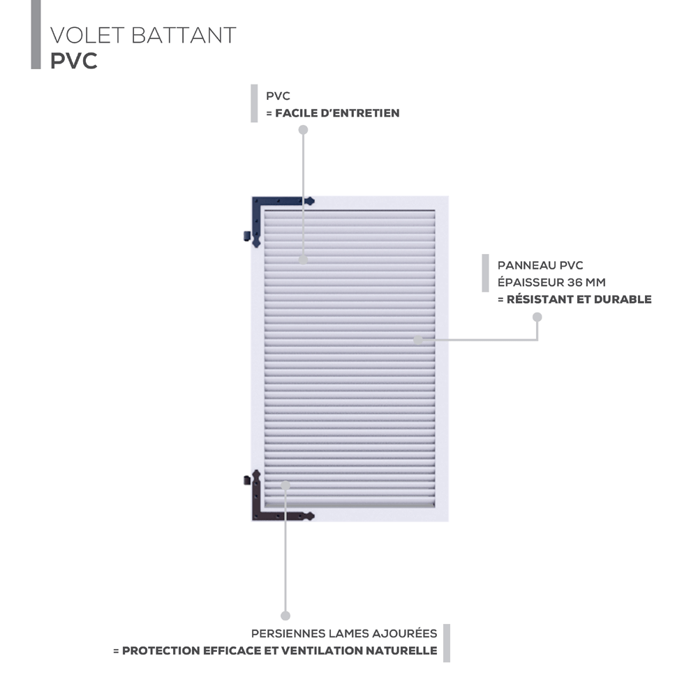 Idéal pour les régions ensoleillées, ce volet battant PVC est parfait pour les habitations nécessitant une ventilation tout en conservant une protection efficace.